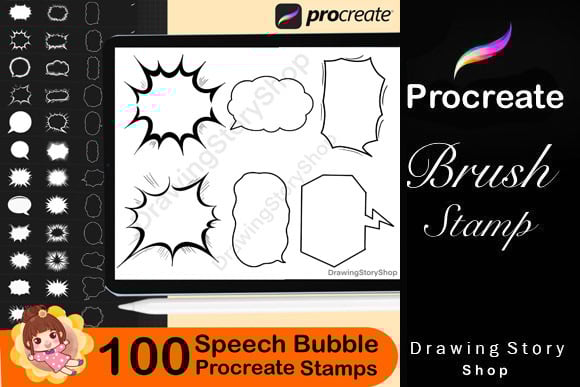 300 Procreate Manga Comic Brush Set ,Speech Bubble,Speed Lines,Halftone Brushes,Screentone Brushes